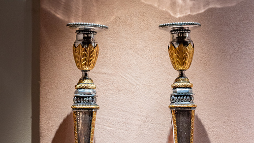 Продолжаем рассказ об экспонатах выставки «Магия блеска. Стразы и граненая сталь XVIII — начала XIX века из собрания Исторического музея». Сегодня обратимся к бытовым — привычным и нам или уже ушедшим в прошлое — предметам, украшенным граненой сталью или стразами. Искусно выполненные тульскими мастерами парные подсвечники на одну свечу декорированы полосами золоченой бронзы с геометрическими рельефами — этот мотив повторяется в стояне и постаменте изделия. Свечники выполнены в виде вазонов с рельефными...