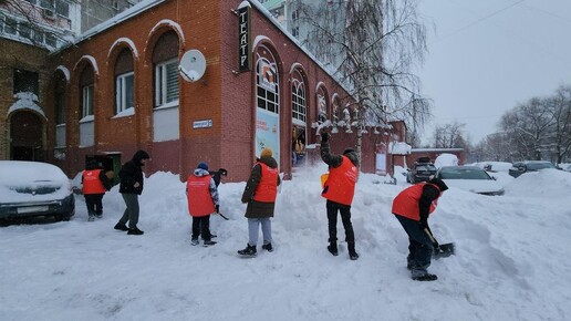 Волонтеры Подмосковья расчистили снег возле театра в Лобне