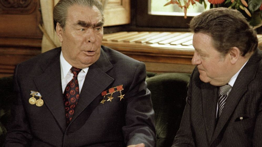 1978. Л.И. Брежнев беседует с председателем Христианско-социального союза Францем Йозефом Штраусом (1915—1988) во время визита в ФРГ