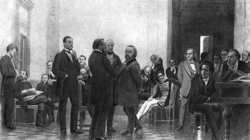 В 19 веке Россия увидела рождение своих великих композиторов. Наиболее значимыми из них были члены «Группы пяти» — Милий Балакирев, Цезарь Кюи, Николай Римский-Корсаков, Модест Мусоргский, Александр Балакирев и, особняком, Петр Ильич Чайковский. Пятерка и Чайковский были вершинами очень разных полюсов музыкальной мысли, которые представляли разные концепции относительно будущего русской музыки. Эти две школы представлены «Националистами»и «Академистами». Первые поддерживали «Пятерку», вторые — Чайковского...