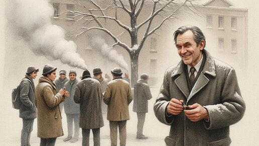 В углу университетской курилки, под сенью голого, заиндевевшего клёна, теснился клубок студентов, выпускавших в морозный воздух дым и пар. К ним, неспешно, с лёгкой улыбкой мудреца, снисходящего до шалостей малых сих, подошел Человек в потертом пальто. Студенты звали его «Профессор», ставя слово в кавычки, ибо он был не просто преподавателем, а явлением, институтской легендой с насмешливым, чуть усталым блеском в глазах. Он достал из кармана портсигар, извлек тоненькую папиросу, прикурил от зажигалки с треснувшим стеклом и, сделав первую, ритуальную затяжку, влился в их круг...