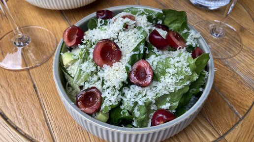 Открытие лета 2022 - зелёный салат с черешней и сыром в ресторане Touché.