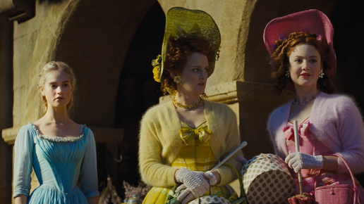 Сэнди Пауэлл, художница по костюмам Золушки-2015, сказала в одном из интервью, что «плохих персонажей одевать всего интереснее, а вот хорошего, доброго персонажа - сложнее всего». Такое впечатление, что на сёстрах она отвела душу! Две занозы, две капризницы, две завистницы, Дризелла в жёлтом и Анастасия в розовом. Девицы, которые хотят быть модными любой ценой и, конечно же, всё время скатываются в вульгарность. Яркие ткани, яркие принты, броская отделка, и всего этого слишком много. Глаза на сценах с ними вот уже, кажется, готовы устать...