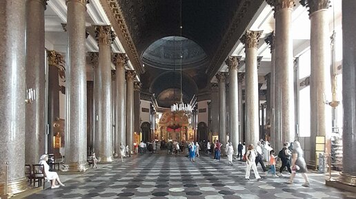 Честно говоря, в Казанском соборе мы были впервые. В предыдущие визиты он постоянно был закрыт, и все наши впечатления об этом грандиозном сооружении, построенном в 1801-1811 годы, сводились к чисто внешним архитектурным восторгам и к тому, что он имеет сходство с Собором Святого Петра в Риме. А тут идём мимо Казанского, двери открыты. Конечно же, мы зашли. :) Про историю собора писать не буду, публикация затевалась ради смотровой площадки, но интерьеры с удовольствием покажу. Листайте карусель...