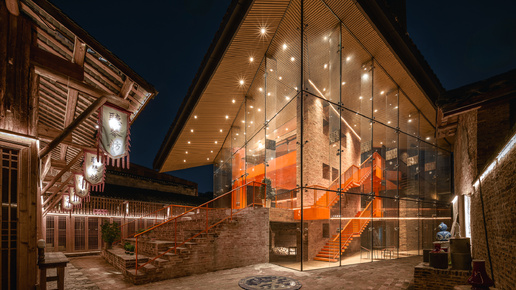 Реконструкция, магазин, Цзиндэчжэнь, Китай. Реконструкция здания бывшей фарфоровой фабрики в самом сердце исторического района Императорских печей города Цзиндэчжэнь осуществлялась с сохранением исторического наследия. Этот метод предполагает размещение архитектурных вставок внутри и рядом с существующими зданиями для оживления объекта, сохраняя при этом его исторические элементы. Центральным элементом проекта является современный архитектурный памятник, органично вписывающийся в центр исторического окружения...