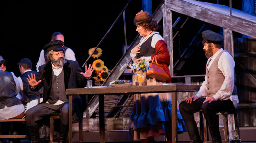 Театр расположен в историческом здании, построенном в 1914 году на склоне горы Горячей для Пятигорского Общественного Всесословного клуба. С 1939 года там разместился театр музыкальной комедии. В этом году пятигорская оперетта открыла свой 85-й сезон. Под впечатлением его премьерного спектакля нахожусь уже несколько дней. Вообще-то, премьера состоялась 25 ноября. Но журналистам предоставили возможность посмотреть спектакль на два дня раньше, пригласив их на сдачу новой постановки мюзикла "Скрипач на крыше"...