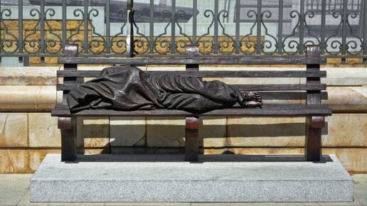 С 2013 года скульптор из Канады Тимоти Шмальц устанавливает одну и ту же бронзовую скульптуру в разных городах мира. Она изображает спящего на скамейке бездомного человека. Скульптура в натуральную величину выглядит анонимной, так как лицо и руки спрятаны под покрывалом, но по характерным ранам на ногах можно понять, что бездомный человек на самом деле является Иисусом. Что еще более интересно, скульптура бездомного Иисуса была размещена перед многими храмами и церквями, которые проявили необычайную терпимость к спорной статуе...