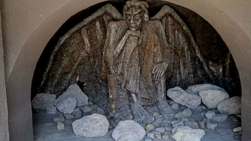 Одной из самых привлекательных достопримечательностей Кисловодска, по мнению местных жителей и гостей города, является скульптура Демон, созданная скульптором: Гургеном Курегяном в 1971 году. Она олицетворяет собой героя знаменитой поэмы М.Ю. Лермонтова - «Демон». Скульптура установлена в искусственной неглубокой пещере под Лермонтовской площадкой в Курортном парке города. Скульптура ограждена решеткой, (на фото ее не видно, так как я делал фотографию, просунув руку через нее) которая создает картину, сидящего демона в темнице за железным забором...
