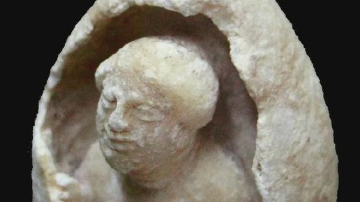 Скульптура, изображающая рождение Елены Троянской (она же Елена Прекрасная). Согласно мифу, мать Елены была оплодотворена Зевсом в образе лебедя; поэтому сама Елена вылупилась из яйца. Известняк, V век до н...