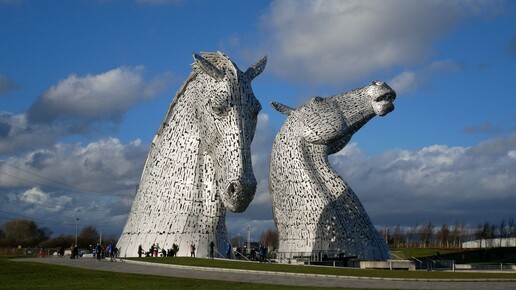 Лошадь долгое время была настоящим другом и помощником человека, поэтому большое количество скульпторов вносят свою лепту в воспевание этого животного. 1. «Келпи» — две гигантские скульптуры лошадиных голов, расположенные в парке Хеликс возле города Фолкерк в Шотландии.