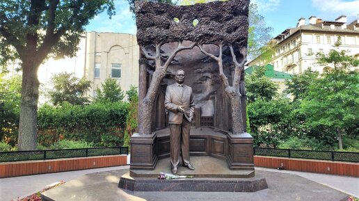 Этот памятник стоит в самом центре Москвы уже пять лет, при этом весьма вероятно, что вы никогда его не видели. Это район Якиманка, сквер Ислама Каримова. И памятник тоже ему. Ислам Каримов был первым президентом Узбекистана: он возглавлял страну с 1991 года, когда республика провозгласила свою независимость, и вплоть до своей смерти в 2016-м. Памятник подарили Москве и стоит он у посольства Узбекистана в знак дружбы наших народов. В этом бронзовом воплощении Каримов вполне похож на себя в последние годы...