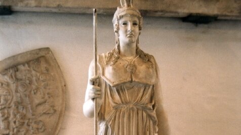 Копьё, как сакральный символ власти, в Древнем мире использовалось не только мужчинами. Часто носителями этого священного оружия были жрицы и богини, которых они изображали. Как примером такого может служить копьё Афины. О сакральном оружие можно прочесть: Сакральное оружие Афина, чьё имя можно перевести с древнегреческого языка как Невероятная[1], является эпитетом змеиной семитской богини пришедшей на Балканы из Ливии (Нехет) и впитавшей в себя медвежий культ пеласгической богини Алеи. Афина была известна на Кноссе (Крит), в кносских табличках она называется a-ta-na-po-ti-ni-ja, В...