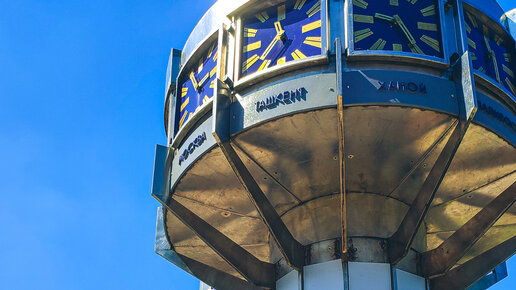 Рядом с заброшенным зданием Советов, поражающего своей монументальностью, стоит еще одно произведение Советского искусства. "Мировые часы" или "Часовые пояса", как их еще называют выполнены мозаикой. Сейчас данная техника как будто осталась в прошлом, её исполнение встречается только в советской архитектуре. Часы находятся на краю Нижнего пруда. Место проходное для тех кто гуляет с острова Иммануила Канта держа направление к Нижнему и Верхнему пруду. Наверху башня с часами, которые не работают. К сожалению весь облик часов требует реставрации...