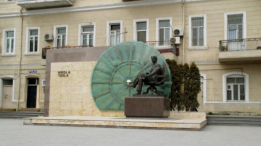 Баку - город не только удивительных зданий и множества фонтанов. Это и город самых разнообразных скульптур. У каждой из которых - своя история. Здравствуйте! Гуляя по Баку - а мы отмаршировали там не менее сотни километров - на пересечении улиц С. Рагимова и Азадлыг увидели памятник Николе Тесле. Кому именно памятник, определили издалека. Потому что колесо, на фоне которого установили памятник, очень узнаваемо: генератор переменного тока, известный ещё по школьным урокам физики. Какое отношение имеет Н...