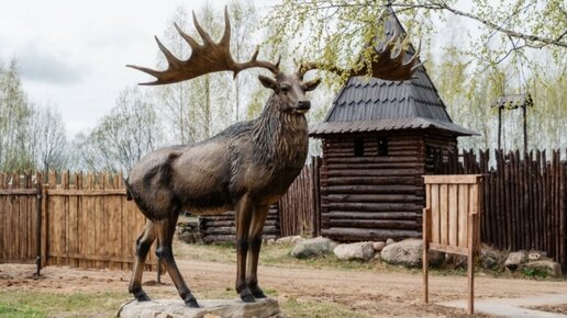 Скульптуру ископаемого оленя Мегалоцероса открыли 26 апреля на ферме «Судимиръ» в Тверской области. Этот олень достигает более трёх метров в высоту, а размах его рогов составляет 4,5 метра. Величественный исполин является ближайшим родственником европейской лани, хотя внешне напоминает благородного оленя. Его называют и Мегалоцеросом, и Гигантским оленем, и Большерогим Ирландским оленем, и даже Королём оленей. Большерогий олень вымер около шести тысяч лет назад. Последние его останки на территории России нашли в Рязанской области...