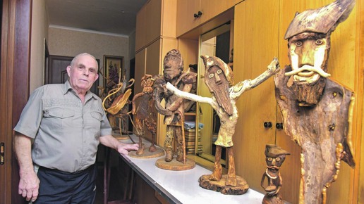 У 79-летнего Василия Баскакова живёт почти четыреста квартирантов. Кухню оккупировали лешие и домовые. В коридоре обосновались огромные совы, чайки и лебеди. А в спальне притаились змеи, стрекозы и динозавры. Это не полёт воспалённой фантазии. Пенсионер действительно «заселил» свою квартиру необычными существами, сделанными из… коряг, найденных во время прогулок. Лесные скульптуры он создаёт более 25 лет. Вася с детства был романтиком и мечтателем. Мог часами лежать на лугу и смотреть, как облака превращаются в роскошные замки, благородных рыцарей и изящных принцесс...