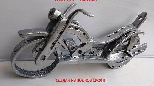 В этой публикации покажу вам небольшие изделия, которые так же сделаны из старинных подков. Их можно использовать как в доме для красоты так и на улице в качестве садовых скульптур. Итак начнем: Скульптура байкер на мотоцикле, сделана из двух предметов, сам байкер, в темном окрасе и цвета стали мотоцикл (байк) Старинная пушка, по образцу 1812 г, все детали сделаны из подков. На вид она не большая , но довольно тяжелая т.к. примерный вес одной подковы 400 гр, а на ее изготовление понадобилось 7-8 подков...
