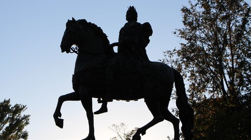 В Петербурге множество памятников Петру I, основателю города. Но самая необычная судьба — у самого первого памятника. Модель памятника сделал еще при жизни Петра I скульптор Бартоломео Карло Растрелли. Царь Петр хотел поставить конную статую на Коллежской площади на Васильевском острове — тогда это была главная площадь Петербурга. Но не успел. В бронзе отливал статую сын скульптора, знаменитый архитектор Франческо Бартоломео Растрелли (создатель Зимнего дворца). Дочь Петра I, императрица Елизавета Петровна, хотела поставить статую отца перед Зимним дворцом...