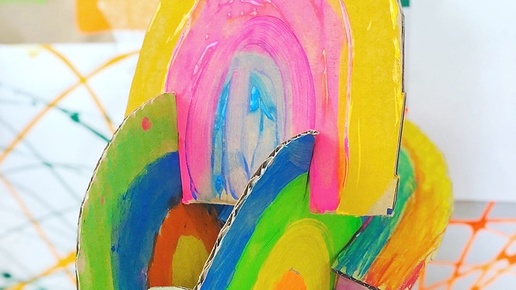 Гофрированный картон от упаковочных коробок — лучший художественный материал! Он бесплатный, универсальный и легкодоступный. И его можно использовать в бесчисленных художественных проектах. Единственный нюанс - не всегда дети могут его сами разрезать. Но тут взрослые могут помочь сделать заготовки, с которыми малыши будут с легкостью работать. Каждую деталь можно раскрашивать только одним материалом или использовать разные - всё на усмотрение художника. Здорово получается, если чередовать полосы, раскрашенные восковыми мелками и красками...