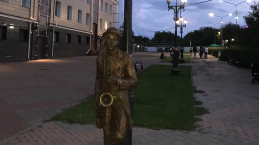 На Комсомольской площади города Орска, у драматического театра, установлена скульптура саксофониста. Автор скульптуры — Сергей Соломаха. Точная дата установки неизвестна, но известно, что в 2018 году сообщалось, что фигуру саксофониста установили на Комсомольской площади Орска после реконструкции...