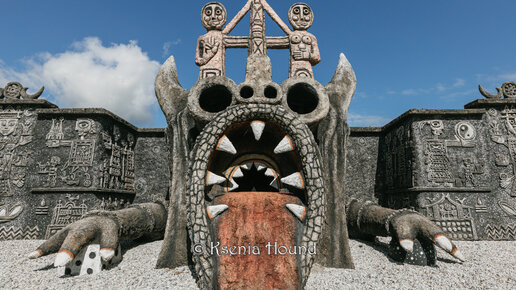 Да это же храм Сатаны! - писали мне мои читатели, первыми увидевшие у меня видео из этого необычного места, а в частности - огромную скульптуру с широко раскрытым ртом, демонстрирующим несколько рядов зубов. Что же это за зверь такой? Давайте разбираться. По замыслу автора, известного французского скульптора и художника Робера Татана, дракон (а это именно он) не несет за собой никакого демонического аспекта, а является стражем и хранителем знаний, охраняющим вход в главное творение артиста - Сад Медитаций...