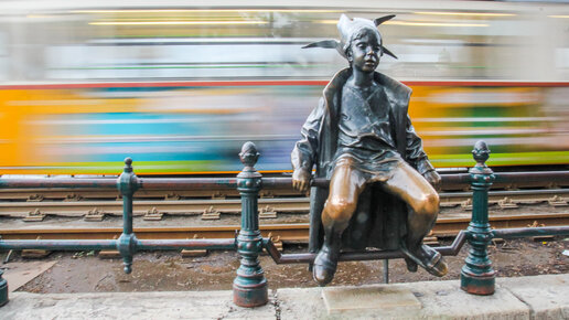 Это не мальчик в шутовском колпаке. А девочка в бумажной короне. :) Скульптор Ласло Мартона делал ее со своей дочери. И называется...