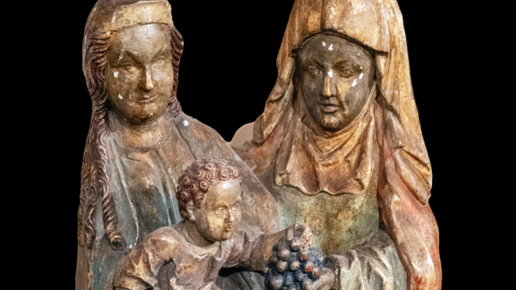 Скульптура «Анна и Мария с Иисусом на руках» изготовлена в XIV веке в Голландии. Создана в эпоху Северной готики и обладает свойственным для своего времени религиозным мотивом. Размер изделия – 68х37х21см. При изготовлении использовалось дерево и полихромная краска...