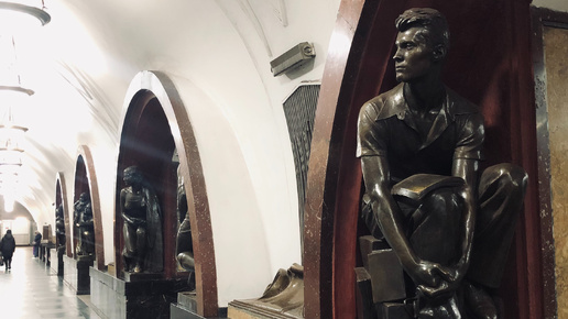 Станция метро «Площадь Революции» была построена по проекту архитектора Алексея Николаевича Душкина и открыта 13 марта 1938. Это очень необычная станция: она похожа на музей скульптуры. Сама история нашей страны предстаёт здесь перед нами в образах советских людей. История, застывшая в бронзе: Подземный вестибюль станции оформлен массивными арками, опирающимися на невысокие постаменты – через эти арки пассажиры проходят на платформы к поездам. В этих арочных проходах установлены скульптуры, изображающие обычных советских людей...
