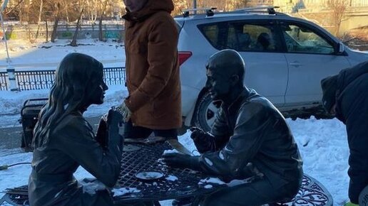 В Омске отремонтировали скульптуру «Встреча» в сквере Врубеля