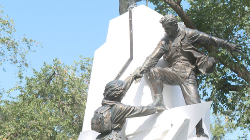 В Волгограде готовится к открытию новый памятник. Он установлен в горсаду. Скульптурная композиция «Вперед и вверх» демонстрирует фигуры трех альпинистов. Идея установки принадлежит общественникам региона. «Лучше гор могут быть только горы, на которых еще не бывал». Знаменитые строки Владимира Высоцкого – посвящение всем покорителям вершин – теперь выгравированы на новом памятнике. Создание скульптуры «Вперед и вверх» завершается. И уже в ближайшие дни объект, который символизирует нелегкий путь людей, стремящихся к достижению своих вершин, станет еще одним украшением территории горсада...