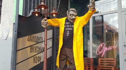 В Новосибирске на площади Ленина установили двухметровую скульптуру зомби в желтом плаще