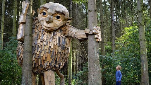 Художник создает гигантские деревянные скульптуры и прячет их в лесах Копенгагена