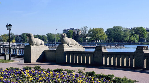 Мы с вами на берегу Верхнего озера. Нужно сделать уточнение - Верхний пруд, ведь так переводится с немецкого Обертайх. Этот пруд создан в 1270 году, когда тевтонцы перегородили приток Преголи для создания замковых укреплений. Морские животные Жемчужиной Верхнего пруда считаются скульптурная композиция "Морские животные" работы Германа Тиле. Создал он их в 1913 году. У скульптур довольно интересная жизнь! Как и большинство памятников архитектуры Кёнигсберга они пострадали в войне. Однако, до 1988 года в поврежденном состоянии они еще находились на этом берегу...
