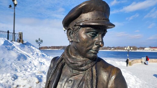 Герои любимых советских фильмов всё чаще воплощаются в бронзе усилиями современных скульпторов и по инициативе городских властей и горожан. И где же им — киношным народным любимцам — появляться, если не на месте съемок! Это тот самый случай 😊 Самое начало фильма Леонида Гайдая, экранизации романа «Двенадцать стульев»: Остап Бендер и мальчишка-беспризорник встретились на спуске (а точнее все-таки подъеме), чтобы обсудить, где же ключи от той самой желанной квартиры, и это город Рыбинск, что в Ярославской области...