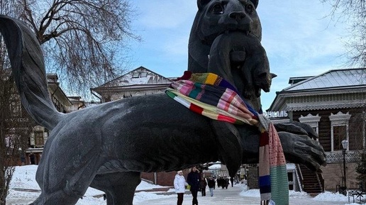 Рекордный 18-метровый шарф пропал со скульптуры Бабра в Иркутске