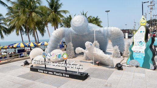 Скульптуры из пластика на пляже Джомтьен в Паттайе (Таиланд). Попытка привлечь внимание к проблеме