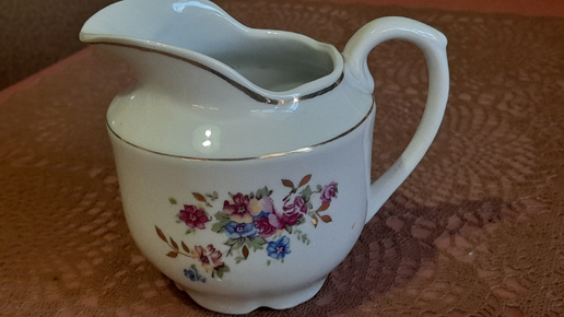 Продолжу знакомить вас со своими сливочниками. В первой части, представляя их, забыла о двух, с которых сейчас и начну. Сливочник произведён на заводе Пролетарий в 1956 г. Значит ему в этом году исполняется уже 70 лет. Как видите рисунок разный с разных сторон. Информацию о форме и авторе этого изделия найти мне не удалось. Нашла только, что в 1950-е годы на заводе «Пролетарий» работали художники-профессионалы, которые создавали простые и лаконичные формы для посуды. Одним из создателей форм массовой посуды был Константин Иванович Тыркин, старейший художник завода...