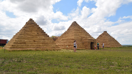 Каждое лето на полях Ставрополья появляются арт-объекты из соломы: египетские пирамиды, лабиринты, фигуры животных и многие другие. Идея соломенного парка принадлежит одному фермерскому хозяйству, занимающемуся разведением бахчевых культур. Рядом со своими арбузными полями они строят соломенные скульптуры, посмотреть на которые люди приезжают со всего края. Фермеры нашли удачное решение: не они везут арбузы на рынки, а покупатель сам приезжает к ним...