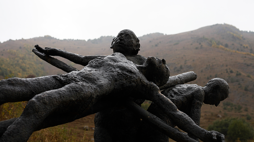 Работы скульптора Владимира Соскиева — предмет бурных дискуссий в Северной Осетии. Выставка в горах не стала исключением. Художник — об оскорбленных верующих и странных звонках. Высокогорное селение Ногкау в Северной Осетии, буквально — новое село, затеряно между троп и туманов. Здесь уже почти никто не живет, и тем более удивительно оказалось видеть, как на фоне скал вдруг выросли 25 скульптур из бронзы и дерева. Вот бабушка — какой в Осетии помнит каждый свою — неспешно идет за водой. Чуть дальше еще одна — в трудах обычной сельской жизни...