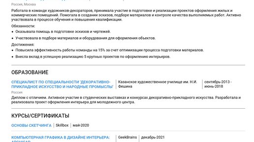 Пример резюме художника-декоратора 2025 - Как составить