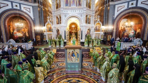 Икону Рублева "Святая Троица" установили в храме Христа Спасителя