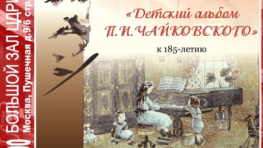 К 185-летию композитора Приглашаем взрослых и детей на «Детский альбом» Чайковского (к 185-летию) — музыкальный спектакль с пьесами из знаменитого цикла великого русского композитора. В 2025 году отмечается юбилей — 185-летие великого русского композитора Петра Ильича Чайковского. Также как про Пушкина в литературе, про Чайковского в музыке можно сказать, что это — «наше всё». А специально для детей Пётр Ильич сочинил цикл «Детский альбом»,...