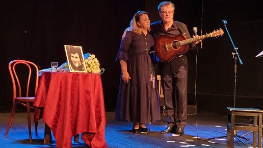 В день памяти Владимира Высоцкого в Музее-театре «Булгаковский Дом» состоялся спектакль «Я, Высоцкий Владимир» по мотивам книги Марины Влади «Владимир или Прерванный полёт», а также произведений Владимира Высоцкого. Исполнители – актёры театра на Таганке любимовского периода – заслуженные артисты России Любовь Чиркова и Валерий Черняев, режиссер — народный артист России Валерий Золотухин. Спектакль переплетался из фрагментов книги Влади и песен Владимира Семеновича, и что мне понравилось, актёры не изображали этих двоих людей, только делились их творчеством...