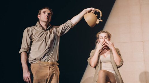 Юлия Пересильд и Андрей Бурковский в спектакле Виктора Рыжакова «Солнечная линия» по пьесе Ивана Вырыпаева