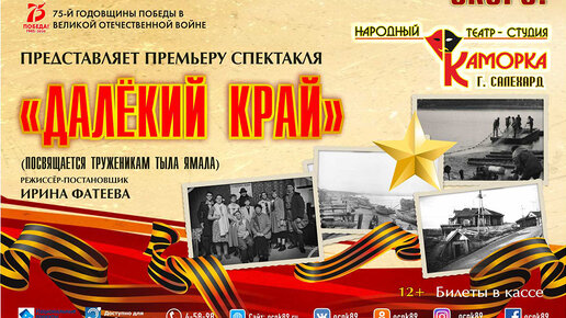 В рамках 75-летия Победы в Великой Отечественной войне и 90-летия Ямало-Ненецкого автономного округа, в Окружном Центре национальных культур народный театр-студия «Каморка» представит премьеру спектакля «Далёкий край», по мотивам одноимённой пьесы Евгения Шварца...