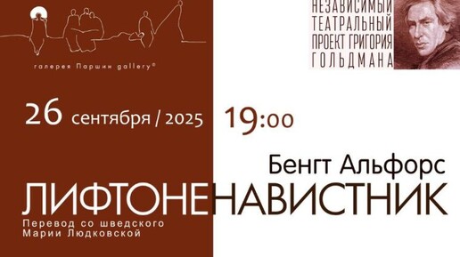 🎭В галерее «Паршин» покажут моноспектакль «Лифтоненавистник
