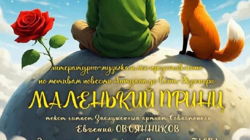 » В концертном зале Многофункционального культурного центра «Бухта Казачья» состоится поистине завораживающее и волшебное действо. Актер театра и кино Заслуженный артист Севастополя Евгений Овсянников представит одно из самых глубоких произведений литературы, сказку Антуана де Сент-Экзюпери "Маленький принц" — притчу для всех возрастов. Аккомпанировать рассказчику будет Севастопольский эстрадно-духовой оркестр под управлением Заслуженного артиста Севастополя Валентина Таева...