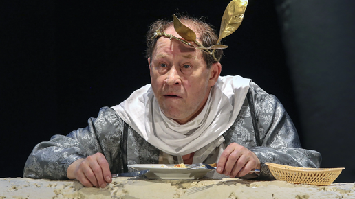 Во-первых, я когда-то читала пьесу Дюрренматта и мне показались интересными и тема, и герои , и основная идея, и текст в виде пародии на классическую трагедию и древнюю историю . Юмор немецкого писателя тоже понравился и я ещё тогда подумала, что неплохо бы было увидеть сценическое воплощение этой пьесы. Но ставят её редко. Особенно сейчас. В Театре на Васильевском - единственная постановка. Ну а ещё ,спектакль сильно заинтересовал, потому что главного героя- последнего Римского императора Ромула...