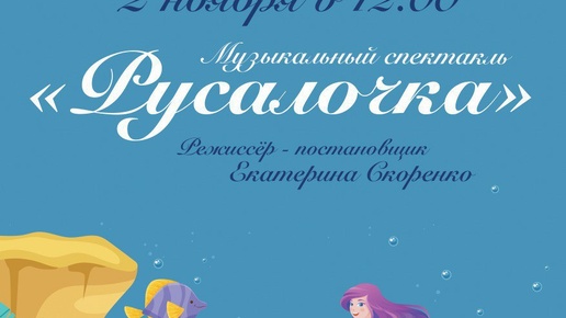 ✨ Музыкальный спектакль «Русалочка» 💫 В исполнении театрального коллектива «Постскриптум». ❗Всем известная сказка вновь оживет на сцене ⏳Продолжительность спектакля 1 час 🎬Режиссер спектакля Екатерина Скоренко 🚫 Возраст: 6+ 📆 02.11.2025 🕒 12:00 🏢 ДК им...