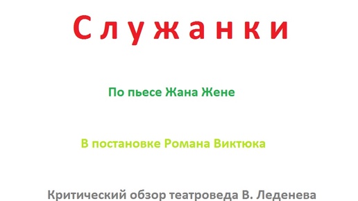 Поступив в 1991 г. в Институт культуры, я сразу много услышал там ото всех о нашумевшей премьере спектакля "Служанки". Столько было разговоров на эту тему предельно восхищенных в вузе с огромным скопищем всяких творческих и околотворческих личностей, что я загорелся желанием обязательно посмотреть данную постановку. Тем более, я получил только студенческий билет и, как мне сказали в деканате, что теперь я могу по этому студбилету бесплатно посещать различные учреждения культуры, в том числе и театры, с целью ознакомления с различными, как тогда говорили, культурными мероприятиями...